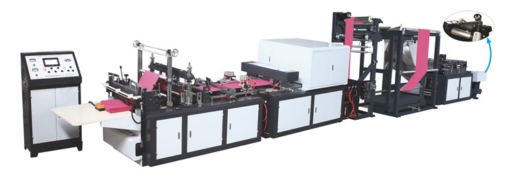 1.該機適用原材料為無紡布,能加工各種不同規格,不同型狀的無紡布袋,平口袋,手提平口袋,背心袋,穿繩袋及立體袋等,該機集機電為一體,運用LCD觸摸屏操作。配以步進步式定長,自動上料,光電跟蹤,電腦自動定位,電腦自動糾邊,無料自動停機,準確,平穩,自動計數,即可設定計數報警,自動打孔,自動燙把手等工控裝置,使其生產的成品封線牢固,切線美觀。高速效,是你可以放心適用的優質環保型制袋設備。